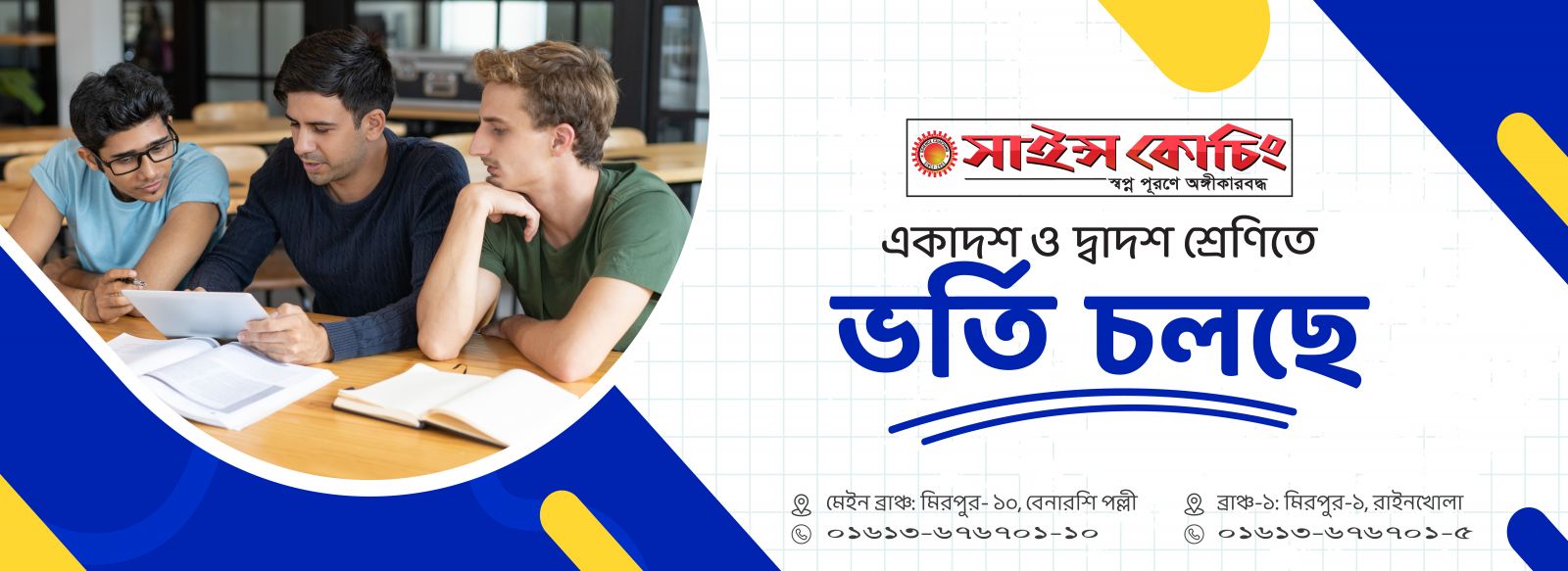 সুপ্রিয় শিক্ষার্থী, আসসালামু আলাইকুম। ২০০৩ সাল থেকে BUET এবং Medical -এর একঝাঁক মেধাবী সাবেক শিক্ষার্থীদের দ্বারা পরিচালিত সাইন্স কোচিং- এর অভাবনীয় সাফল্য অর্জনের পর এবারও শুধু একাদশ-দ্বাদশ শ্রেণিতে (বিজ্ঞান বিভাগ) সীমিত সংখ্যক আসনে ভর্তি চলছে। প্রত্যেক শিক্ষার্থী তার জীবনের একটা লক্ষ্য নিয়ে সামনের দিকে অগ্রসর হয়। কারো লক্ষ্য ডাক্তার হবার, কারো লক্ষ্য ইঞ্জিনিয়ার হবার অথবা দেশের সেরা বিশ্ববিদ্যালয়ে ভাল কোন Subject -এ পড়ালেখা করার। তেমনি প্রত্যেক মা-বাবা ও অনেক আশা নিয়ে, স্বপ্ন নিয়ে তাদের সন্তানকে বিজ্ঞান বিভাগে ভর্তি করান। প্রত্যেক মা-বাবাই চায় তাদের সন্তান যেন নৈতিক শিক্ষা লাভ করে আদর্শ মানুষ হয়ে দেশের শ্রেষ্ঠ শিক্ষা প্রতিষ্ঠানে ভর্তি হয়ে তাদের উজ্জ্বল ভবিষ্যৎ গড়বে এবং মা-বাবার সম্মান, মর্যাদা বৃদ্ধি করবে। এজন্য তারা তাদের সামর্থের মধ্যে যতোটুকু আছে তার সবটুকু ছেলেমেয়েদের দেবার চেষ্টা করেন। তারা নিজে কষ্ট করে কিন্তু তাদের ছেলেমেয়েকে কখনও কষ্ট করতে দেয় না। তেমনি প্রত্যেক সন্তানেরও ইচ্ছে, আগ্রহ ও নিজের চেষ্টা থাকে কিন্তু সঠিক দিক-নির্দেশনা না পাওয়ায় কাঙ্ক্ষিত লক্ষ্যে পৌঁছাতে পারে না। তোমরা জানো, S.S.C এবং H.S.C পরীক্ষায় A+ এবং Golden A+ পাওয়া সত্ত্বেও হাজার হাজার শিক্ষার্থী BUET, Medical এবং DU-এর মতো শ্রেষ্ঠ শিক্ষা প্রতিষ্ঠানগুলোতে ভর্তির সুযোগ প ...